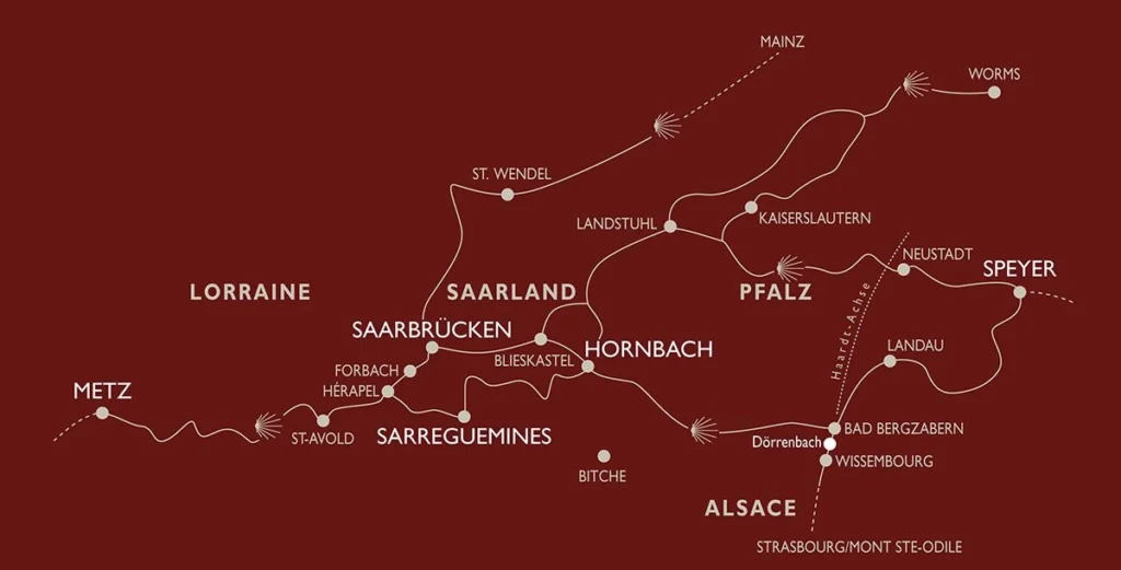 Tel est le titre du projet européen modèle, lancé en 2006, pour valoriser les sentiers régionaux des pèlerins de Saint-Jacques partiellement situés en Sarre, dans le Palatinat, en Lorraine et en Alsace.