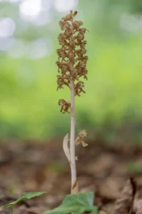 Et une autre orchidée, à l’aspect de champignon. Il s’agit de la Néottie nid d’oiseau, qu’il est difficile de repérer par l’ambiance sombre de la hêtraie - photo 6.